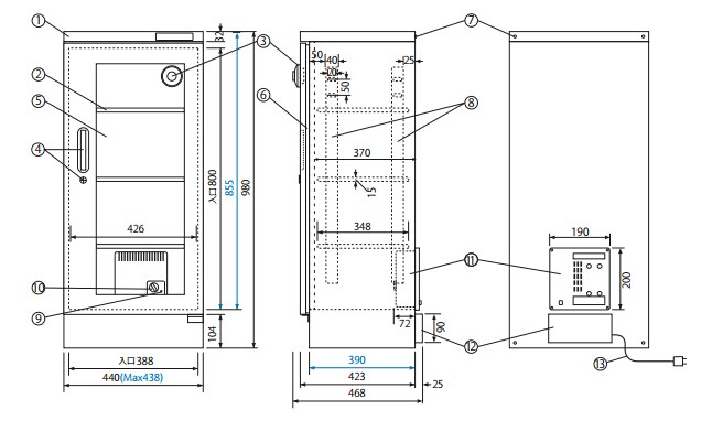 半导体、电子部件、精密部件的保管,在一日内柜门需要反复开合的情况,也建议使用本型号产品。